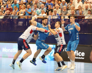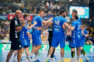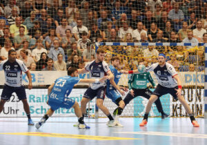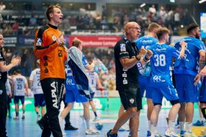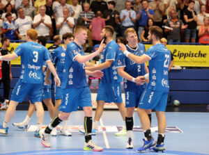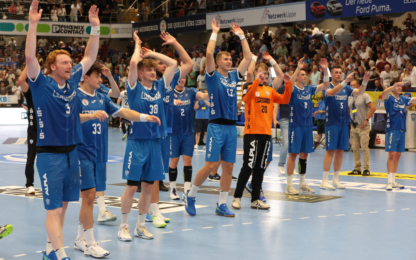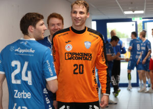 TBV Lemgo-Lippe vs. XXX TBV: 2 HUTECEK Lukas (AUT), 3 THEILINGER Nicolai, 4 ZEHNDER Samuel (SUI),5 BROSCH Jan, 8 SIMAK Frederik,10 LÆRKE Emil Buhl (DEN), 13 Thomashevskyi Oleksii (UKR), 14 SCHAGEN Bobby (NED),,20 ZECHER Finn, 21 CARSTENSEN Leve, 23 SUTON Tim,24 ZERBE Lukas,25 VERSTEIJNEN Niels Gerardus, 33 HOUTEPEN Thomas (NED), 37 HANSEN Hark, 38 RUNGE Malte, 39 PULS Frederik, 40 OETJEN Thore, 41 HASENKAMP Fynn Jarik, 48 PETROVSKY, Leos (TSR), 99 KASTELIC Urh (SLO),A STRUCK Matthias,B KEHRMANN FlorianC BROY Volker, D WEKING Katharina; XXX: