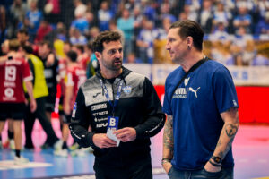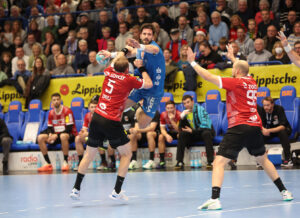 TBV Lemgo-Lippe vs. XXX TBV: 2 HUTECEK Lukas (AUT), 3 THEILINGER Nicolai, 4 ZEHNDER Samuel (SUI),5 BROSCH Jan, 8 SIMAK Frederik,10 LÆRKE Emil Buhl (DEN), 13 Thomashevskyi Oleksii (UKR), 14 SCHAGEN Bobby (NED),,20 ZECHER Finn, 21 CARSTENSEN Leve, 23 SUTON Tim,24 ZERBE Lukas,25 VERSTEIJNEN Niels Gerardus, 33 HOUTEPEN Thomas (NED), 37 HANSEN Hark, 38 RUNGE Malte, 39 PULS Frederik, 40 OETJEN Thore, 41 HASENKAMP Fynn Jarik, 48 PETROVSKY, Leos (TSR), 99 KASTELIC Urh (SLO),A STRUCK Matthias,B KEHRMANN FlorianC BROY Volker, D WEKING Katharina; XXX:#1-Ludwig,Lasse;#87-Kireev,Victor;#96-Milosavljev,Dejan;#3-Wiede,Fabian;#5-Darj,Max;#9-Tollbring,Jerry;#11-Andersson,LasseBredekjaer;#15-Nowak,Marcel;#17-Lichtlein,Nils;#18-Lindberg,Hans;#19-Gidsel,Mathias;#20-Freihöfer,Tim;#22-Orlov,Maxim;#25-Langhoff,Matthes;#26-Chrintz,Valter;#27-Beneke,Max;#33-Sauter,Moritz;#34-WestavTeigum,Hakun;#35-Kopljar,Marko;#37-Günther,Max;#43-Jacobs,JannKeno;#93-Marsenic,Mijajlo;#95-Drux,Paul;#TR-Siewert,Jaron;
