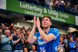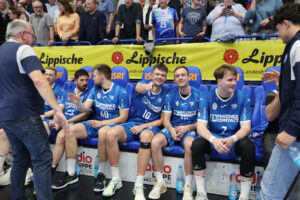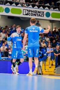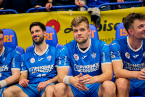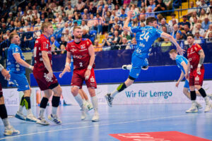 TBV Lemgo-Lippe vs. XXX TBV: 2 HUTECEK Lukas (AUT), 3 THEILINGER Nicolai, 4 ZEHNDER Samuel (SUI),5 BROSCH Jan, 8 SIMAK Frederik,10 LÆRKE Emil Buhl (DEN), 13 Thomashevskyi Oleksii (UKR), 14 SCHAGEN Bobby (NED),,20 ZECHER Finn, 21 CARSTENSEN Leve, 23 SUTON Tim,24 ZERBE Lukas,25 VERSTEIJNEN Niels Gerardus, 33 HOUTEPEN Thomas (NED), 37 HANSEN Hark, 38 RUNGE Malte, 39 PULS Frederik, 40 OETJEN Thore, 41 HASENKAMP Fynn Jarik, 48 PETROVSKY, Leos (TSR), 99 KASTELIC Urh (SLO),A STRUCK Matthias,B KEHRMANN FlorianC BROY Volker, D WEKING Katharina; XXX: