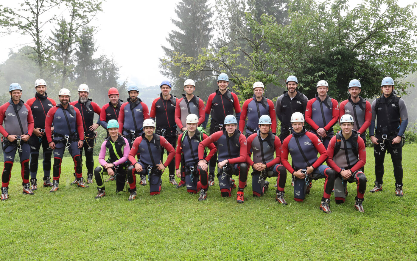 Statt der angekündigten Wanderung erwartete die Mannschaft ein echtes Naturabenteuer: Ausgestattet mit Neoprenanzügen, Helmen und Klettergurten wagten sich die Spieler gemeinsam in eine atemberaubende Landschaft aus Felsformationen und Wasserfällen. Nach einem ausführlichen Sicherheitstraining und ersten Abseilübungen, konnte die Gruppe bestens vorbereitet in die Schlucht starten.