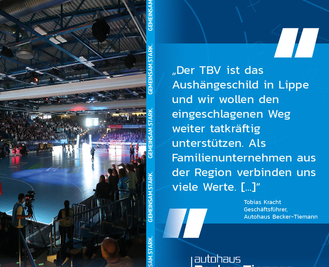 Mit 14 Standorten in Ostwestfalen und dem südlichen Niedersachsen hat sich das inhabergeführte Familienunternehmen bundesweit einen Ruf als zuverlässiger Partner für BMW und MINI sowie für BMW, Triumph und Ducati Motorräder erarbeitet. Nicht ohne Grund haben sich in der Vergangenheit viele Lemgoer Profis für ein Auto des TBV-Partners entschieden. „Unsere Spieler wissen die super Beratung und den großartigen Service vor Ort seit Jahren zu schätzen und legen ihr Vertrauen beim Thema Auto immer wieder gerne in die Hände des Becker-Tiemann-Teams. Gemeinsam mit dem Autohaus können wir auf eine langjährige Partnerschaft zurückblicken, auf die wir sehr stolz sind“, freuen sich TBV-Geschäftsführer Ulrich Kaltenborn und Steffen Tegeler (Senior Manager Sponsoring/Vertrieb) über die Fortführung und Ausweitung der Zusammenarbeit. Zukünftig wird das Autohaus Becker-Tiemann u.a. mit LED-Bandenwerbung bei den Siebenmetern als auch mit Bodenwerbung bei den TBV-Heimspielen in der Phoenix Contact-Arena präsent sein.