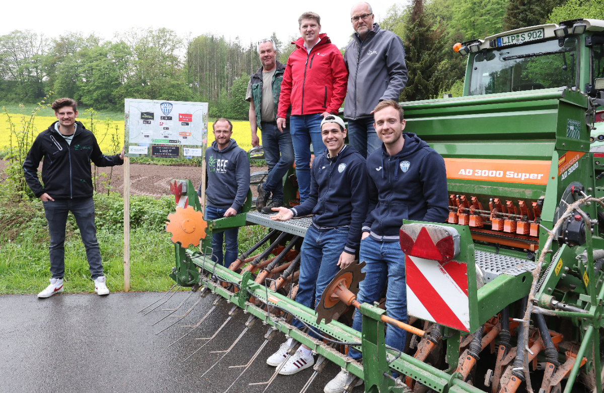 Der Startschuss für die Einsaat der riesigen Blühfläche erfolgte nun in der vergangenen Woche. An den Standorten Kalletal und Lemgo werden in Kürze zwei Blühstreifen entstehen, deren Saatgut von Feldwerk genau auf die Region Lippe abgestimmt wurde. Mit dabei waren neben den beiden TBV-Spielern Bobby Schagen und Samuel Zehnder auch die beiden TBV-Partner HUNTER und die Sparkasse Lemgo, welche mit jeweils 800 Quadratmetern einen großen Anteil an der TBV-Blühfläche haben. Zwar konnte der Trecker aufgrund von Nässe noch nicht starten, doch mittlerweile sind die Blühsamen unter der Erde und werden in Kürze eine Heimat für viele Bienen und Insekten bieten.