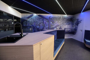 Unter dem Namen Loge.Ten hatte TBV-Partner Kögel + Nunne Bau GmbH, Spezialist für schlüsselfertige Bauvorhaben, gemeinsam mit dem lippischen Handball-Bundesligisten, im vergangenen Jahr Studierende der Technischen Hochschule Ostwestfalen-Lippe zu einer spannenden Challenge aufgerufen. Ziel des Campus-Projekts war die Entwicklung eines ansprechenden Innenraumkonzepts für die Loge 10, die bei TBV-Heimspielen und weiteren Events in der Phoenix Contact-Arena das Zuhause des TBV-Partners ist. Nachdem Anfang des Jahres ein Gewinner-Entwurf gekrönt wurde, feierte die fertige Loge nun zum Auftakt der Saison 2024/25 ihre Einweihung.
