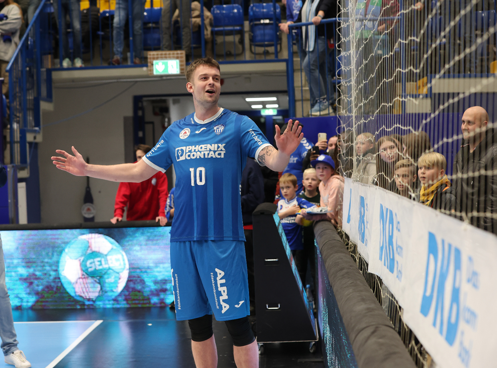 Spannung bis zum Schluss garantierte das gestrige Heimspiel gegen Eisenach. Letztendlich erzielte Emil Buhl Laerke mit einem Distanzkracher das Tor zum 26:24-Endstand und sorgte für großen Jubel in der .