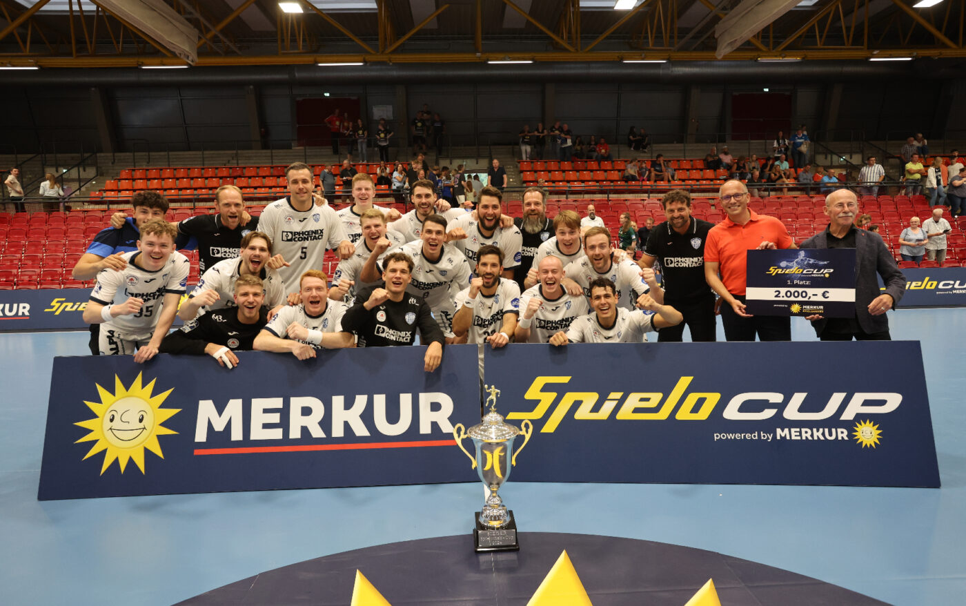 Da ist das Triple! Mit der Titelverteidigung beim Spielo-Cup in Lübbecke gewann der TBV Lemgo Lippe den dritten Pokal beim dritten Vorbereitungsturnier. Nachdem sich der TBV bereits am Freitag gegen den Zweitligisten GWD Minden durchsetzen konnte (27:18), behielten die Lipper auch im Finale am Samstag gegen die HSG Wetzlar mit 31:24 (17:12) klar die Oberhand.