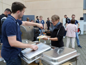 Am gestrigen Donnerstag hat die Bundesligamannschaft die beiden Lemgoer Fanclubs wieder zum traditionellen Grillabend eingeladen. Auch in diesem Jahr stellten sich die Spieler wieder fleißig hinter den Grill und die Getränketheke und meisterten die Bewirtung der über 100 anwesenden Fans mit Bravour. Ob Wasser oder Cola, Steak oder Wurst, jeder Wunsch wurde den treuen Lemgoer Anhängern gerne erfüllt.