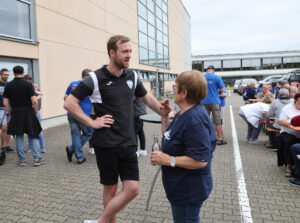 Natürlich wurde der gemeinsame Grillabend an der Phoenix Contact-Arena auch wieder zum angeregten Austausch genutzt. Beliebte Gesprächspartner waren dabei vor allem die externen Neuzugänge Leos Petrovsky, Nicolai Theilinger und Oleksii Tomashevskyi, die über ihre ersten Wochen in Lemgo berichteten. Auch untereinander wurden die ersten Fanfahrten und Aktionen für die kommende Saison besprochen.