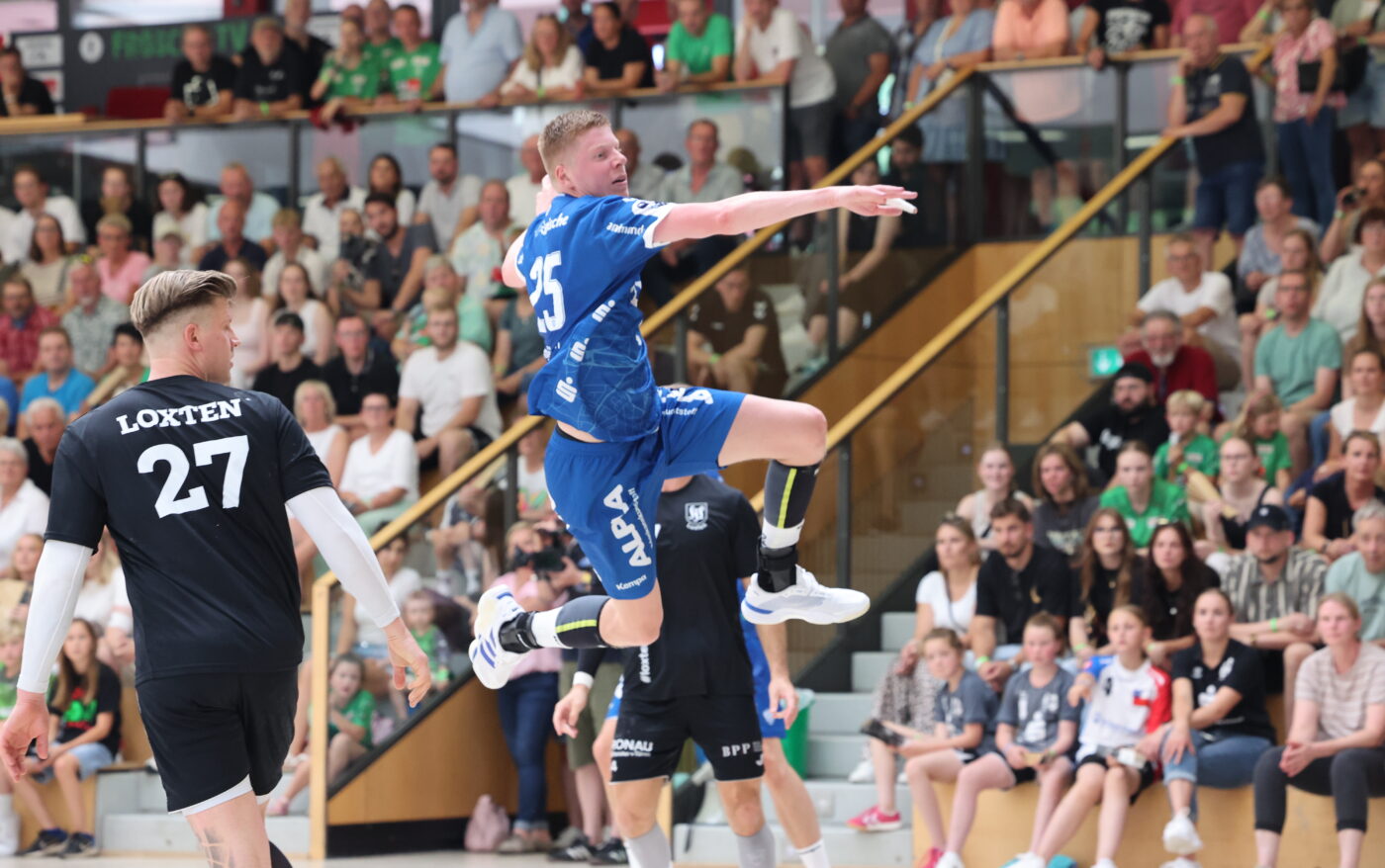 Über 600 Zuschauer sorgten am Samstagabend in der SparkassenArena in Versmold für beste Stimmung beim ersten Freundschaftsspiel der Saison. Mit voller Bundesliga-Besetzung trat das Team von Trainer Florian Kehrmann beim Regionalligisten Sportfreunde Loxten an – und machte direkt zu Beginn klar, dass es sich nicht um einen lockeren Aufgalopp handeln sollte.