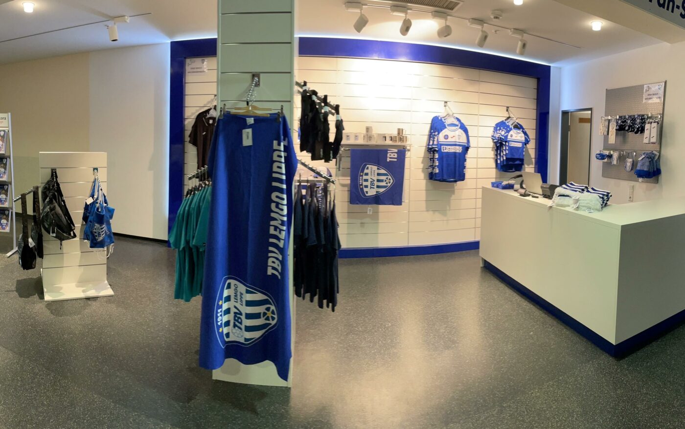 Neuer Fanshop mit Sonderaktionen: Ein Besuch des Fanshops lohnt sich am Sonntag ganz besonders, erstrahlt er doch im neuen Look! Zur Feier des Tages gibt es für TBV-Fans viele Sonderaktionen! Der Shop hat ab 14:35 Uhr durchgängig geöffnet. Weiterhin in allen Größen erhältlich: die neuen TBV-Trikots. Diese können in den Kindergrößen 6XS bis XS (59,90€) sowie in den Unisex-Größen S bis 4XL (69,90€) erworben werden.