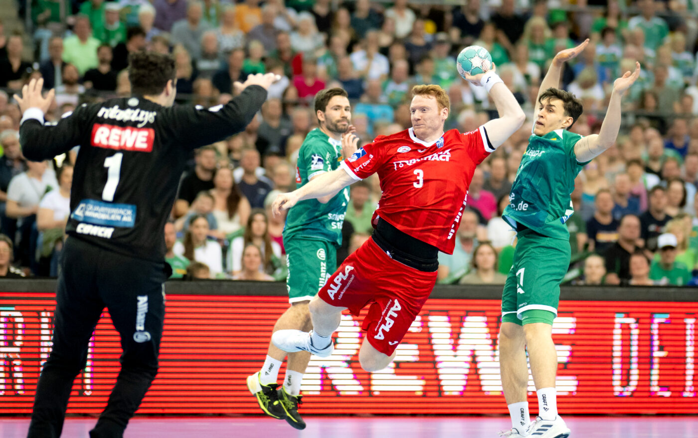 Erste Halbzeit: Die Partie zwischen dem SC DHfK Leipzig und dem TBV Lemgo Lippe begann energiegeladen, wobei Leipzig mit einem Tempogegenstoß von Andri Mar Runarsson nach einigen Sekunden mit dem ersten Treffer die Torejagd eröffnete (1., 1:0). Mit einem schnellen drei-Tore-Rückstand (4., 4:1.) schien sich Lemgo schwerer in die Partie einzufinden als die Gastgeber. Die Mannschaft von Florian Kehrmann kämpfte in den ersten Minuten mit vielen technischen Fehlern in der Offensive, die es den Leipzigern zunächst leicht machten, das Spiel frühzeitig an sich zu reißen. Nach etwa zehn gespielten Minuten festigten die Gäste dann aber ihr Spiel, fanden bessere Abschlüsse und konnten die Fehler auf ihrer Seite minimieren (11., 6:4). Für einen weiteren Schlüsselmoment sorgte Finn Zecher in der 14. Minute, der den Siebenmeter von Lukas Krzikalla parierte und damit den Grundstein für den ersten Ausgleich legte. Als Jan Brosch diesen erzielte (16., 7:7), entwickelte sich ein Spiel auf Augenhöhe. Kurze Zeit später wechselte Kehrmann Urh Kastelic für Zecher ein, damit dieser von nun an das Tor seiner Mannschaft dichthalten und ein möglicher Faktor für eine Führung werden kann. Leipzig konnte sich zwischenzeitlich zwar nochmal abzusetzen, aber nach einem erneuten Ausgleichstreffer, diesmal von Lukas Hutecek (25., 12:12), gelang es den Lippern in der Folge die Kontrolle über den Rest der ersten Halbzeit zu übernehmen. Das TBV-Team nutzte diesen Moment und durch die Treffer von Leos Petrovsky und Leve Carstensen gelang es ihnen, bis zur Pause einen hart erkämpften 4-Tore-Vorsprung herauszuspielen. Mit einer 12:16-Führung ging es schließlich für die Lemgoer Handballer in die Kabine.