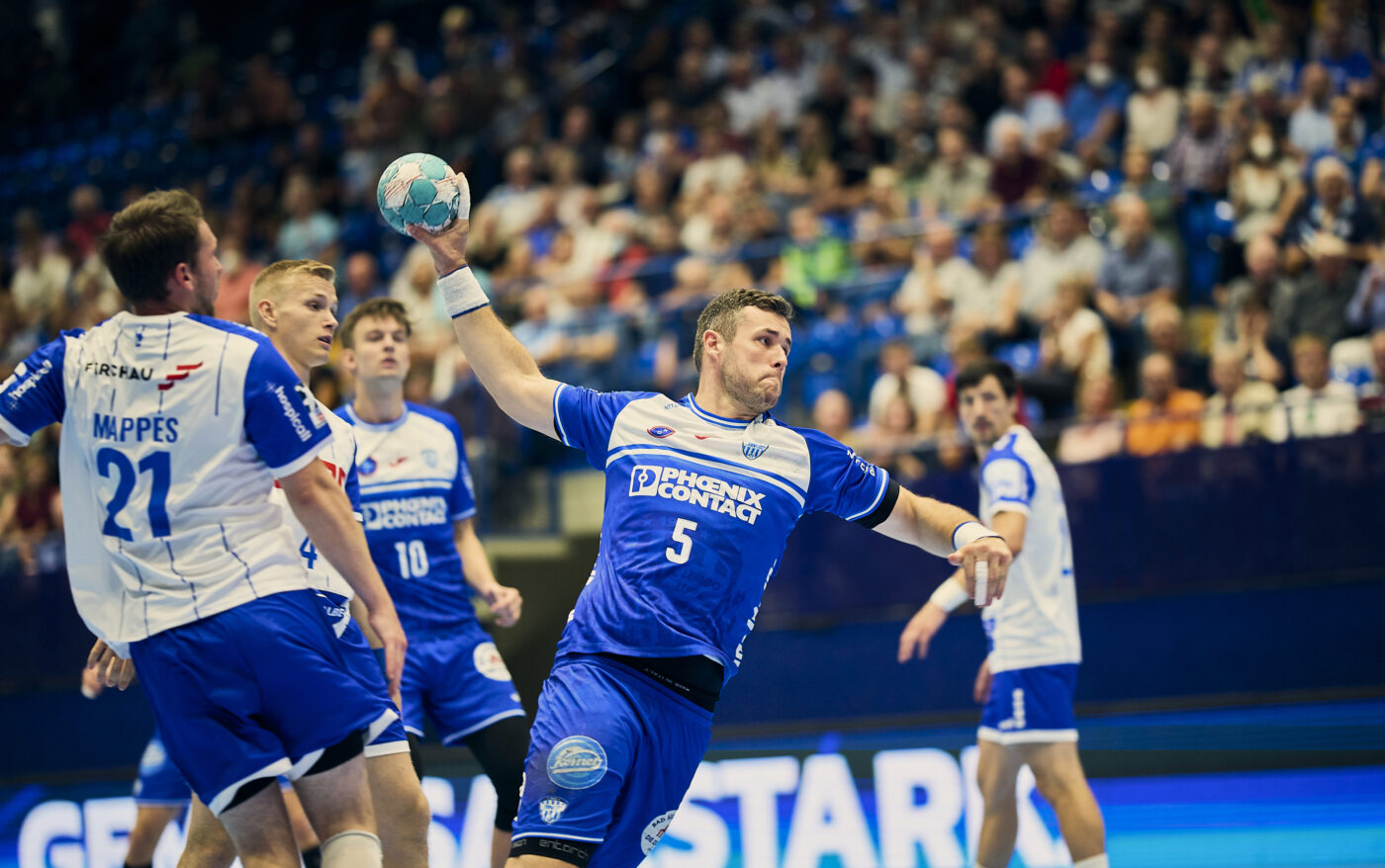 Zum Spiel: Pünktlich um 19.05 Uhr pfiff Schiedsrichter Christian vom Dorff in der Phoenix Contact-Arena die neue Bundesliga-Saison an. Den besseren Start erwischten allerdings die Gäste aus Gummersbach, deren Anhang in der Kurve vom Anwurf an mächtig Rabatz machte. Den Bundesliga-Rückkehrer schien dies zusätzlich zu beflügeln, der mit einem Doppelpack von dessen Strippenzieher Dominik Mappes gleich mal vorlegte.