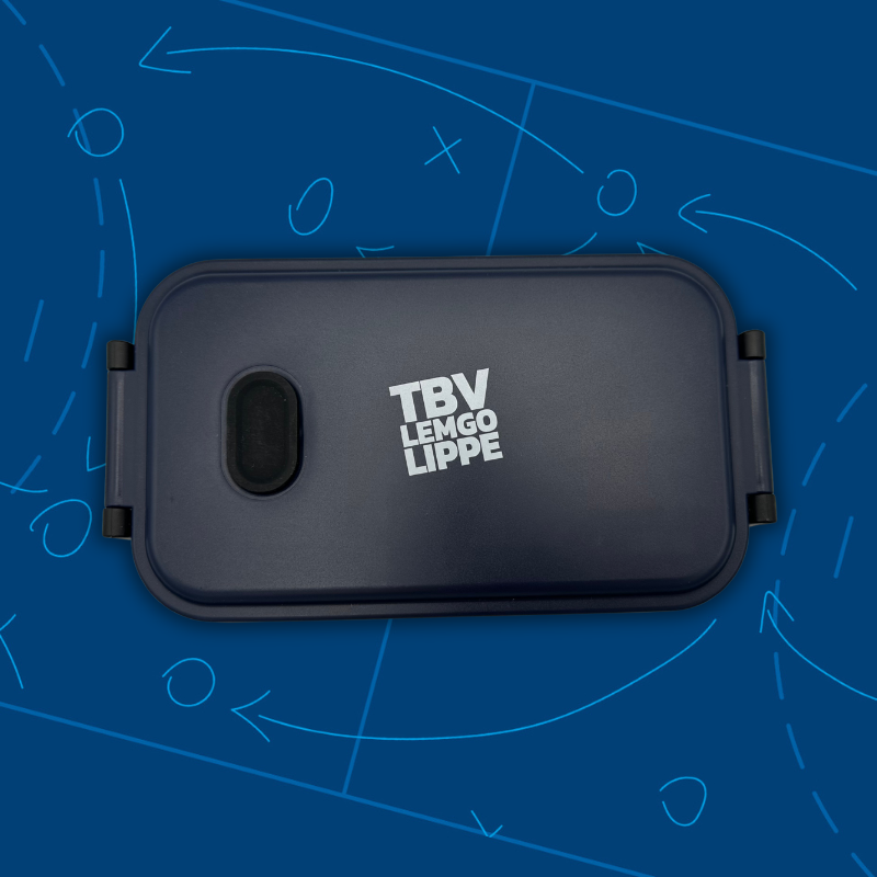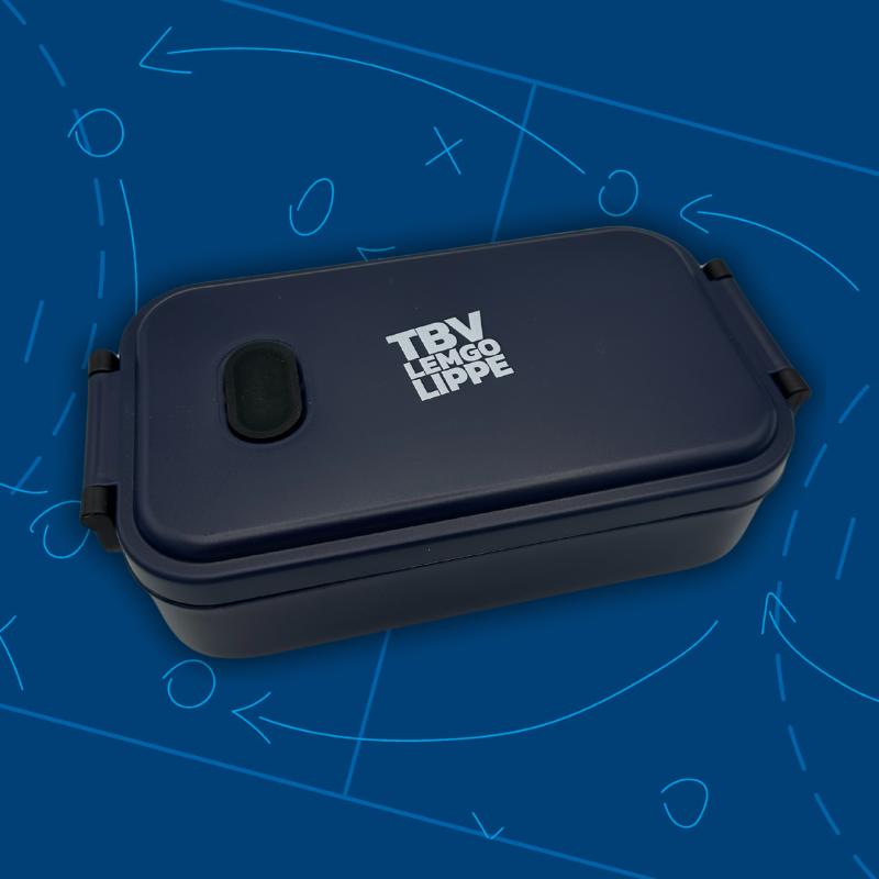 Brotdose aus recycelten Kunststoff mit TBV-Blocksatz-Logo, 2 Seitenverschlüsse
