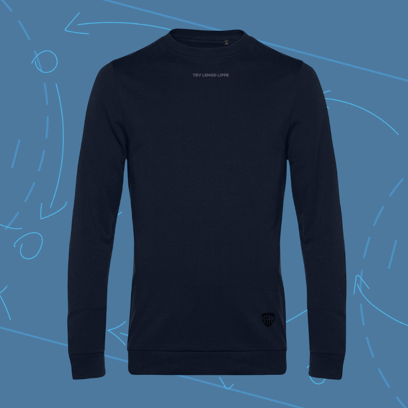 Schlichter Sweatshirt-Pullover in der Farbe dark navy. Mit „TBV Lemgo Lippe“-Aufdruck am Kragen sowie Vereinslogo am unteren linken Saum.