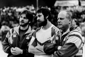 Mit Rüdiger haben wir gefeiert, gejubelt, gerannt und geackert. Er war nicht nur ein Physiotherapeut, sondern auch Motivator, Vertrauter und Freund. Es gibt kaum eine Halle in Deutschland, die er nicht gesehen hat – und auch quer durch Europa hat er unser Team auf zahllosen Reisen begleitet.