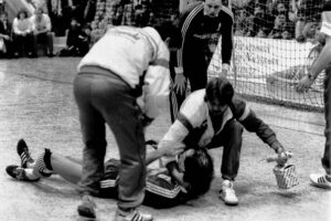 Rüdiger war Physiotherapeut der ersten Stunde – ein „TBV-Physio aus Leidenschaft“. Wann immer ein Spieler auf dem Feld zu Boden ging, war er oft der Erste, der für Schmerzlinderung sorgte. Seine Behandlungen waren damals wie heute geprägt von Professionalität, Hingabe und einem unerschütterlichen Optimismus. Immer gut gelaunt und dennoch hochkonzentriert bei der Arbeit, war er für Spieler und Betreuer gleichermaßen eine Stütze.