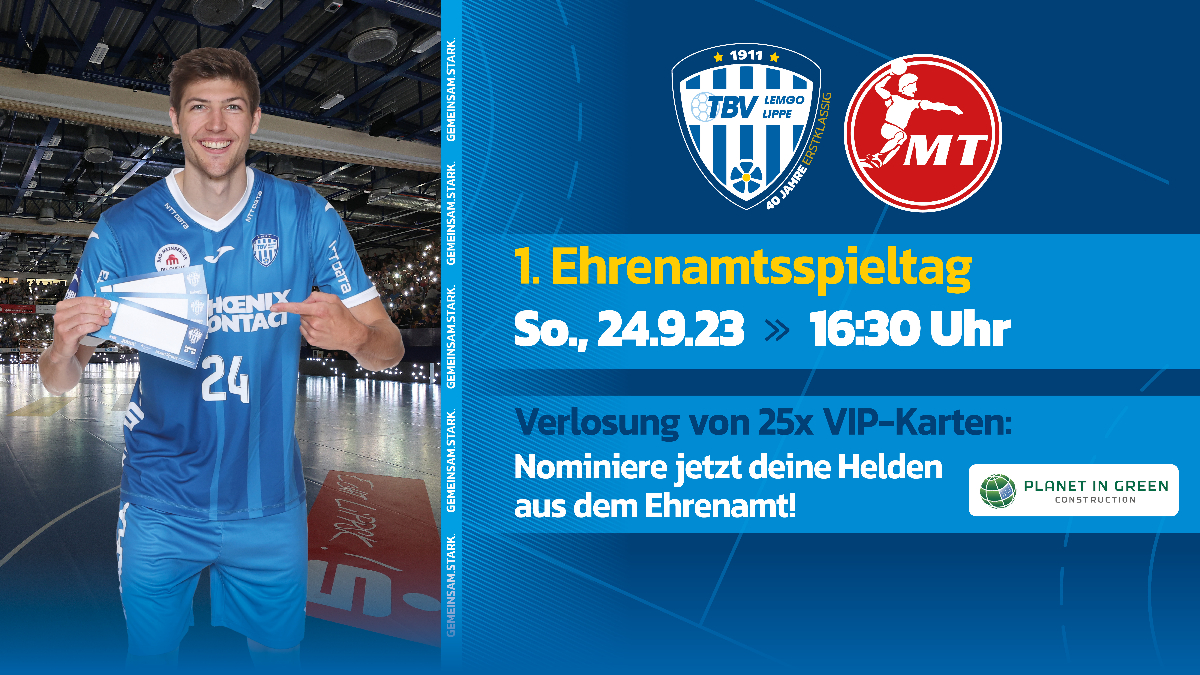 Zusammen mit seinem Partner Planet in Green Construction GmbH wird der TBV Lemgo Lippe Mitte September den ersten Lemgoer Ehrenamtsspieltag austragen. Für das Heimspiel gegen die MT Melsungen (24.9., .