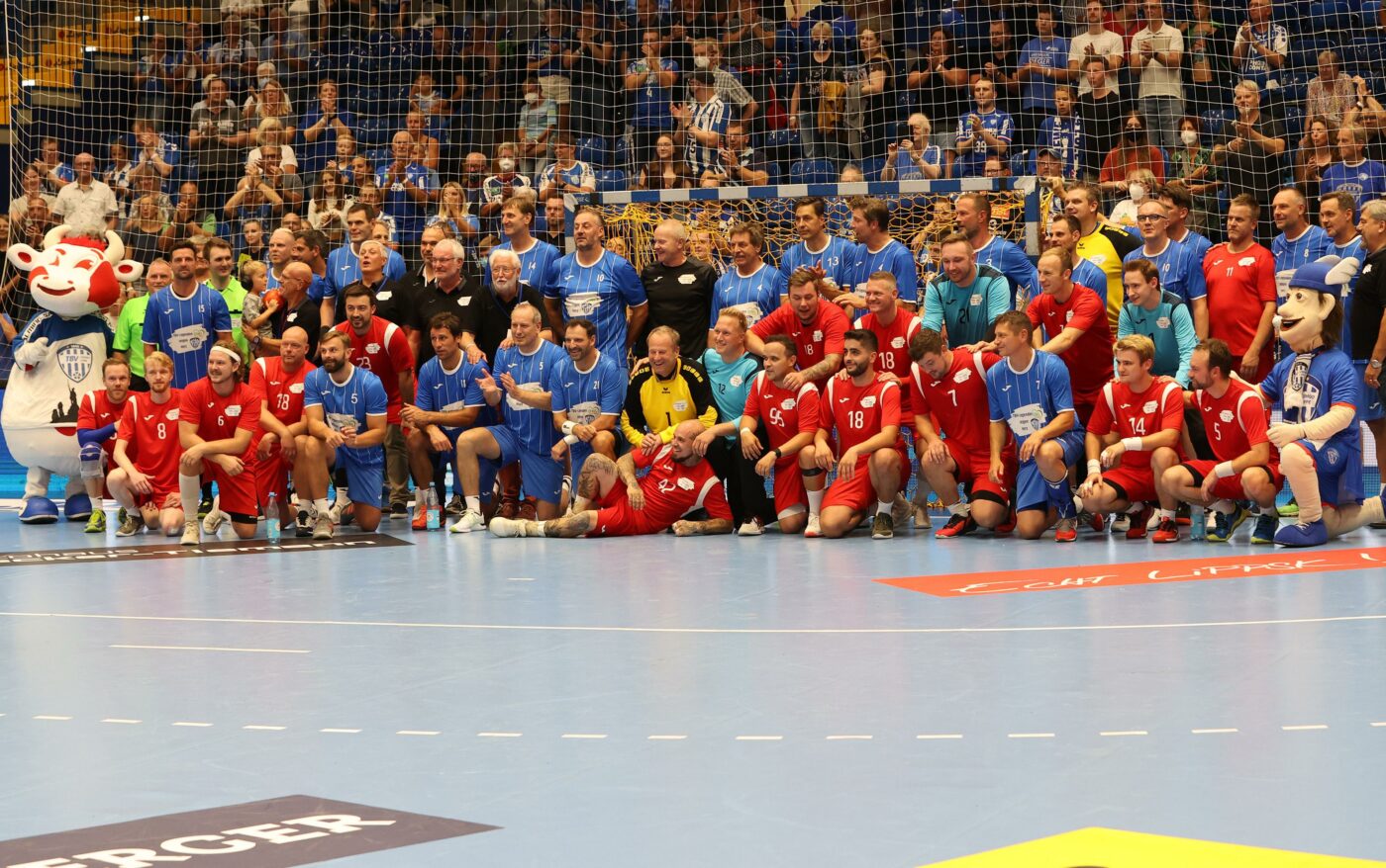 Zwei Mal musste das TBV-Legendenspiel Corona-bedingt verschoben werden. Über zweieinhalb Jahre nach dem ursprünglichen Termin konnte das Spiel für den guten Zweck am gestrigen Samstagabend nun endlich stattfinden. Auch im dritten Anlauf hatte Organisator und Welthandballer Daniel Stephan dabei viele seiner ehemaligen Mitstreiter und weitere TBV-Legenden aktivieren können, den Ball noch einmal in die Hand zu nehmen. Knapp 5.000 Zuschauer in der ausverkauften Phoenix Contact-Arena sollten ihr geduldiges Warten auf diesen unvergesslichen Handballtag letztendlich nicht bereut haben.