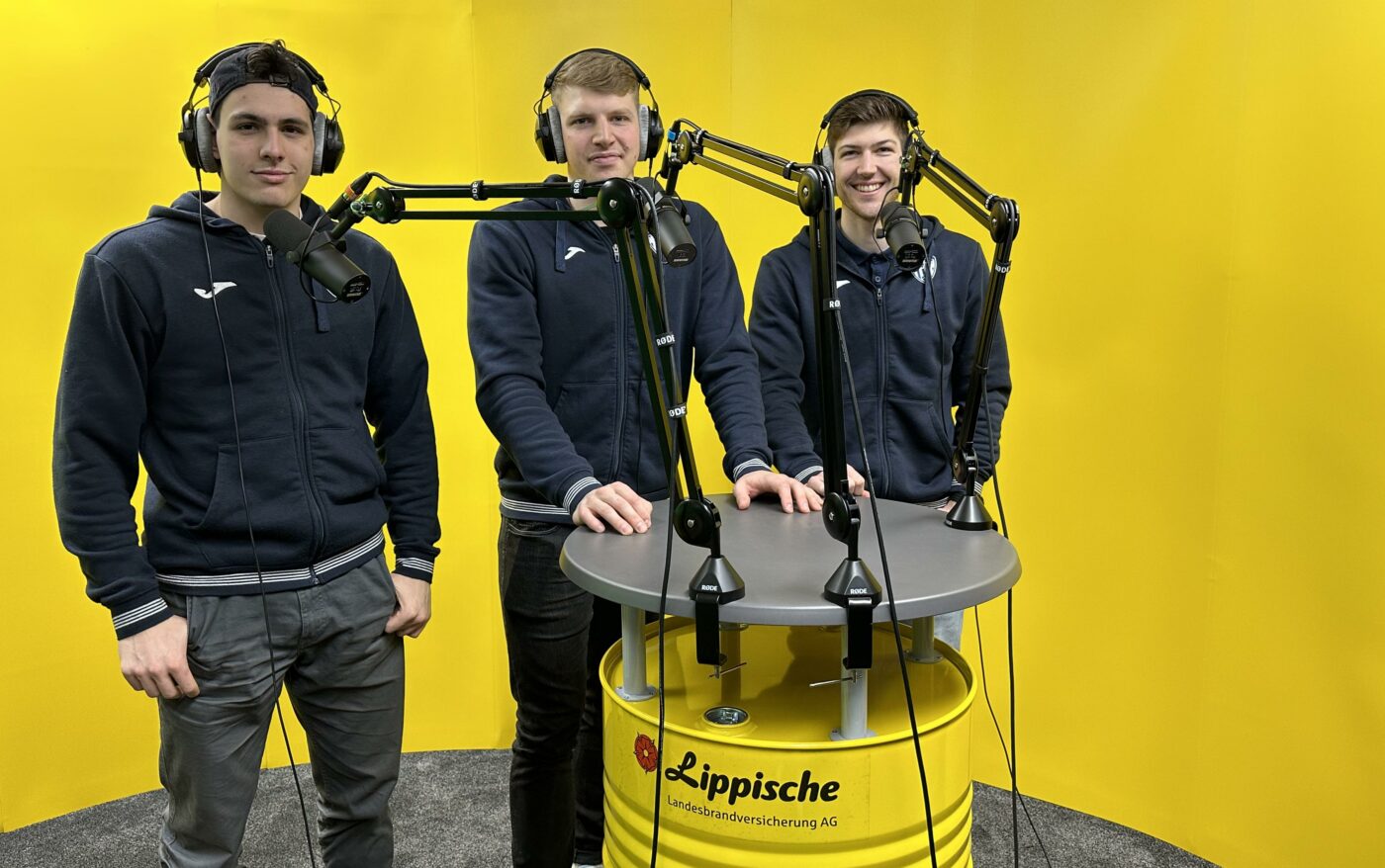 Zu Gast im Detmolder Hauptsitz der Lippischen Landesbrandversicherung AG waren zuletzt Samuel Zehnder, Lukas Hutecek und Lukas Zerbe vom TBV Lemgo Lippe. Vor Ort konnten die Drei im eigenen Aufnahmestudio des Versicherungsunternehmens neue Radiospots für die kommenden Spiele aufnehmen. Die gemeinsam produzierten Spots können ab sofort täglich bei Radio Lippe gehört werden.