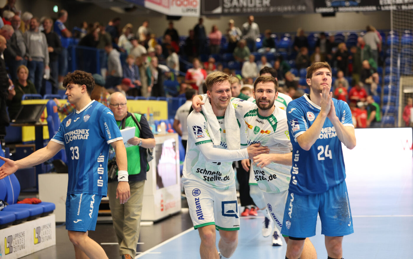 Die Stimme zum Spiel von Gästetrainer Rúnar Sigtryggsson: „Wir waren gut heute: In der Abwehr haben wir zum ersten Mal so richtig gut gestanden, haben ein bisschen Lemgos Laufwege weggenommen. Angriffsmäßig haben wir gemacht, was Lemgo stark macht: klare Laufwege, geduldig mit dem Ball umgehen – das haben wir uns bei Lemgo abgeschaut. Wir haben sie eigentlich mit ihren eigenen Mitteln geschlagen. Ich bin sehr zufrieden, es gibt ein großes Lob an meine Jungs.“