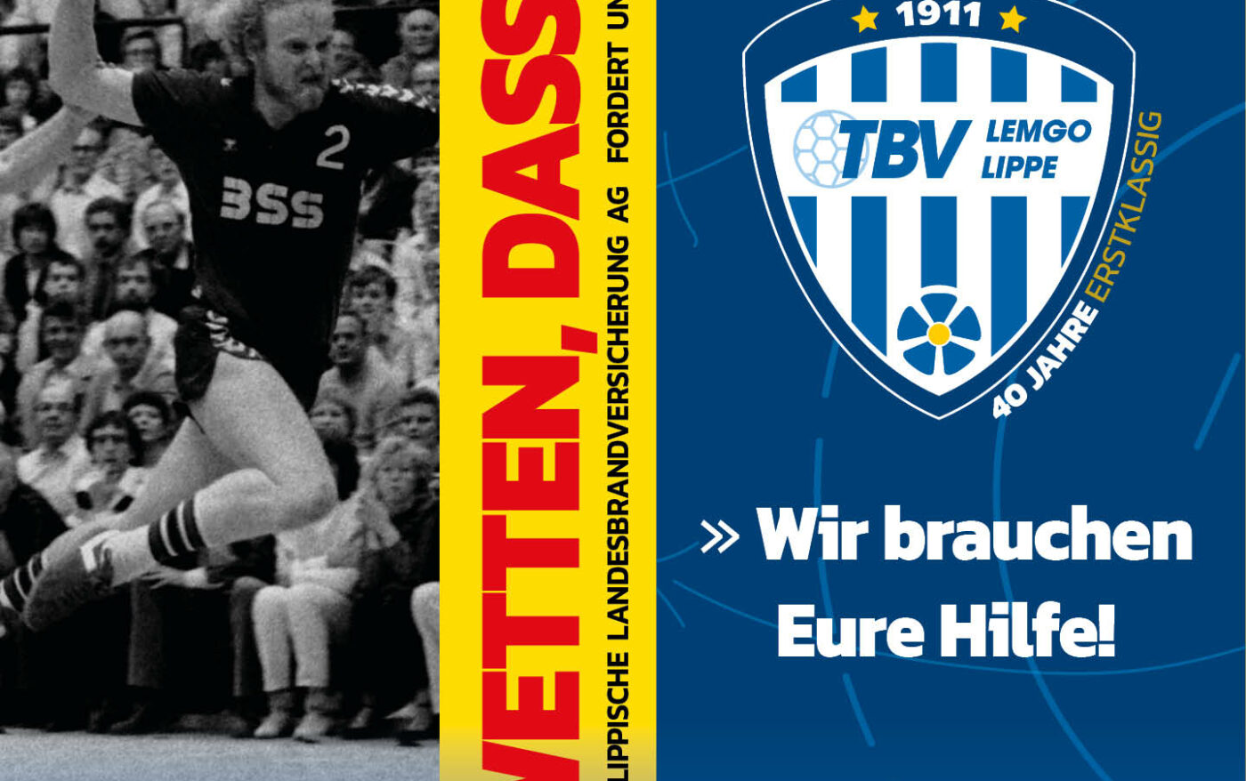 Die Lippische Landesbrandversicherung AG wettet, dass wir es nicht schaffen, bis zum Jubiläumsspiel gegen Göppingen am 6. Mai 2023 alle TBV-Trikots der letzten 40 Erstliga-Jahre zu sammeln.