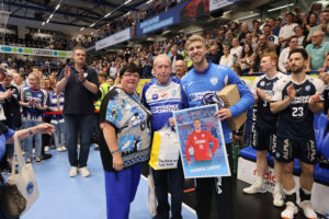 Nach zwei Jahren im TBV-Trikot wurde auch Leos Petrovsky verabschiedet. Der 32-jährige Kreisläufer kam 2023 vom TuS N-Lübbecke und erzielte in 67 Pflichtspielen 60 Tore für Lemgo. Leos stellte sich immer in den Dienst der Mannschaft und überzeugte mit Einsatzbereitschaft und Teamgeist – auf und neben dem Feld. Gemeinsam mit seiner Familie war er ein geschätztes Mitglied der TBV-Familie. Der Verein wünscht Leos und seiner Familie alles Gute für die kommenden Aufgaben.
