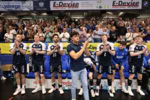 Auch Connar Battermann wurde am Sonntag verabschiedet. Er kam im Januar 2024 als Reaktion auf eine Verletzung von Thomas Houtepen ins Team und verstärkte seither den Rückraum. Der gebürtige Lemgoer wechselte im Winter per Leihe zum TV Großwallstadt und half dort, den Klassenerhalt in der zweiten Liga zu sichern. Obwohl Connar beim letzten Heimspiel nicht persönlich anwesend sein konnte, ließ er seinen Dank an die Fans und den Verein ausrichten. Der TBV wünscht ihm weiterhin viel Erfolg auf seinem Weg in Großwallstadt.