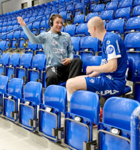 Wenige Tage später stand für drei TBV-Akteure – Constantin Möstl, Lukas Hutecek und Jarnes Faust – ein weiterer Medientermin an: Gemeinsam reisten sie zur offiziellen Medienproduktion der Handball-Bundesliga in die Swiss Life Hall nach Hannover. Der Tag war straff getaktet: Sechs Stationen mit Fotos, Videobotschaften, Interviews und Social Content mussten durchlaufen werden. Besonders erfreulich war auch das Wiedersehen mit alten Bekannten: Unter anderem trafen die Lemgoer in Hannover auf Niko Blaauw, der künftig für den TuS N-Lübbecke aufläuft.