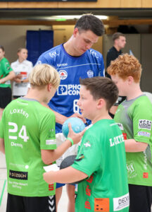 Den sportlichen Abschluss der ersten Woche bildete ein freundschaftliches Testspiel gegen die Sportfreunde Loxten, das am Samstag in Versmold ausgetragen wurde. Vor rund 650 Zuschauern zeigte der TBV sich spielfreudig und torhungrig und gewann deutlich mit 38:24. Trainer Kehrmann nutzte die Gelegenheit für viel Rotation und erste taktische Impulse. Nach dem Spiel nahmen sich Spieler und Trainer deshalb viel Zeit für Autogramme und Fotos. Für die jüngsten Fans hatte Torhüter Urh Kastelic noch eine ganz besondere Überraschung parat: Nach dem Schlusspfiff stellte er sich nochmals zwischen die Pfosten und lud die Kinder ein, sich im Torabschluss gegen ihn zu versuchen – ein unvergesslicher Moment für viele.
