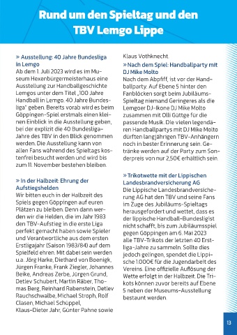 den TBV-Aufstieg in die erste Liga nicht schafft, bis zum Jubiläumsspiel