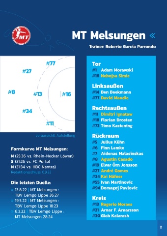 » 13.8.22 | MT Melsungen : #94 Domagoj Pavlovic