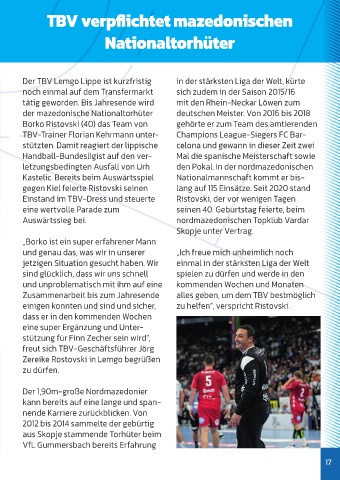 der mazedonische Nationaltorhüter deutschen Meister. Von 2016 bis 2018