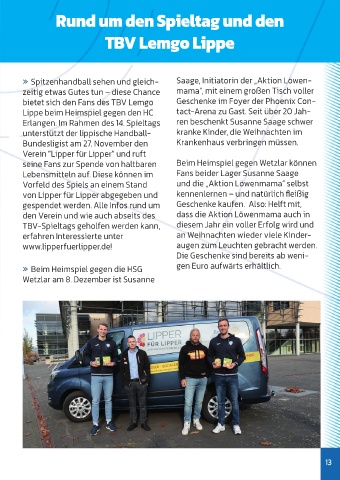 » Spitzenhandball sehen und gleich- Saage, Initiatorin der „Aktion Löwen-