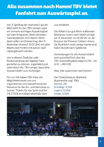 Alle zusammen nach Hamm! TBV bietet