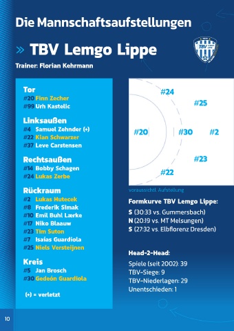 #2 Lukas Hutecek Formkurve TBV Lemgo Lippe:
