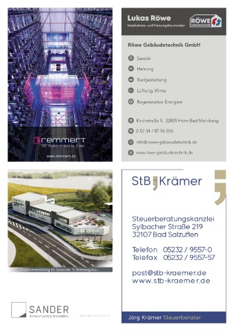 Röwe Gebäudetechnik GmbH Sanitär Heizung Badgestaltung Lüftung, Klima Regenerative Energien Kirchstraße 9, 32805 Horn-Bad Meinberg 0 52 34 / 87 96 016 info@roewe-gebaeudetechnik.de www.röwe-gebäudetechnik.de