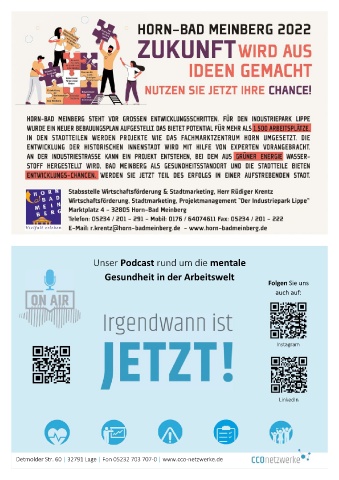 Unser Podcast rund um die mentale Gesundheit in der Arbeitswelt Folgen Sie uns auch auf: Instagram LinkedIn Detmolder Str. 60 | 32791 Lage | Fon 05232 703 707-0 | www.cco-netzwerke.de
